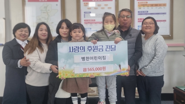 박긍호 병천면장은 “지역사회 이웃을 위해 나눔을 실천하는 아이들의 마음이 전해져 참으로 따뜻한 겨울이 될 것 같다”며 “전해주신 후원금은 병천면 이웃을 살피고 돕는데 사용하겠다”고 전했다.
