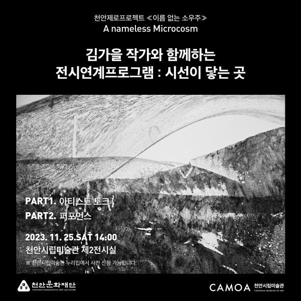 [세종타임즈] 천안시립미술관은 오는 25일 제2전시실에서 2023 천안제로프로젝트 ‘이름 없는 소우주’ 전시와 연계한 융복합 설정극 프로그램 ‘시선이 닿는 곳’을 선보인다.
