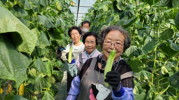 치유농업 프로그램은 아우내은빛복지관의 노인맞춤돌봄 서비스 이용 어르신을 대상으로 병천면 소재 봉황52농장에서 8회에 걸쳐 오이 수확, 오우김치 담그기, 오이비누 만들기 등으로 진행됐다.