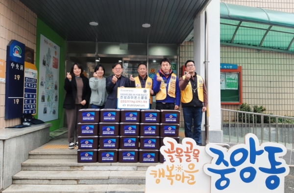 이날 후원 된 김장김치는 홀몸노인, 장애인 등 중앙동 취약계층 가정에 전달됐다.