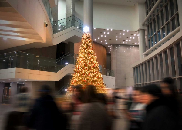 천안예술의전당은 연말연시 주요 기획공연에 앞서 공연장 로비에 5미터 높이의 대형 크리스마스 나무와 야외광장 곳곳에 경관용 조명을 설치했다.