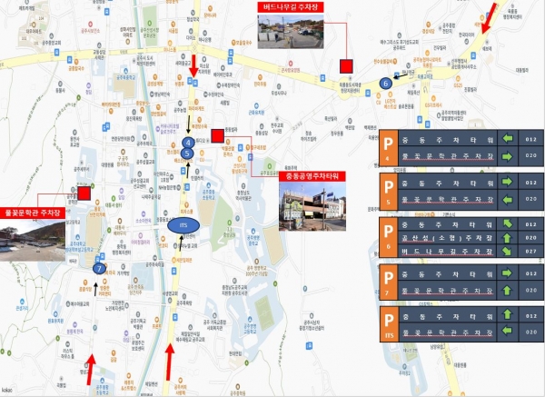 시민들은 온·오프라인을 통해 주차 정보를 실시간으로 확인할 수 있는데 온라인은 공주시 지능형교통체계 누리집에서 확인할 수 있으며 도로변과 교차로에 설치된 전광판에서도 확인 가능하다.