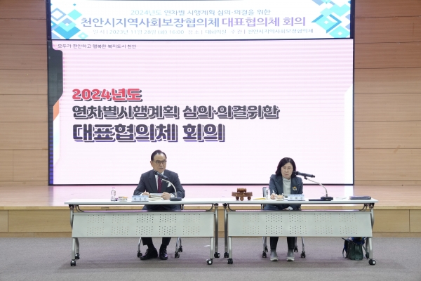 [세종타임즈] 천안시지역사회보장협의체는 지난 28일 시청 대회의실에서 대표협의체 회의를 열고 제5기 지역사회보장계획 2024년도 연차별 시행계획을 심의·확정했다.