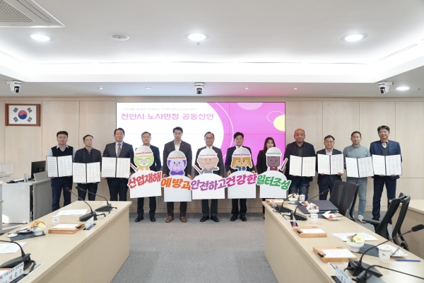 박상돈 천안시장은 “산업재해 예방과 안전하고 건강한 일터 조성은 기업과 노동자를 위해 반드시 실천되야 할 사항”이라며 “앞으로도 노사민정이 소통하고 협력해 노동자가 건강하게 일할 수 있는 천안시가 되도록 노력하겠다”고 말했다.