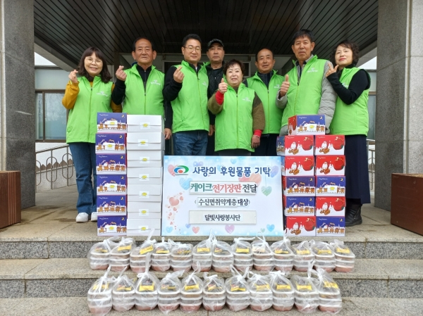이날 달빛사랑봉사단이 후원한 전기장판과 케이크는 기존 밑반찬 지원 대상자 25가구과 한파 취약계층 5가구 등 총 30가구에 전달됐다.