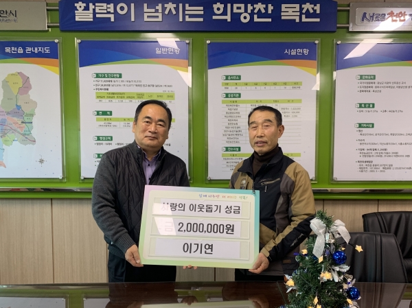 [세종타임즈] 천안시 목천읍은 최근 북면에 거주하는 주민 이기연 씨가 취약계층 지원을 위해 후원금 200만원을 전달했다고 11일 밝혔다.