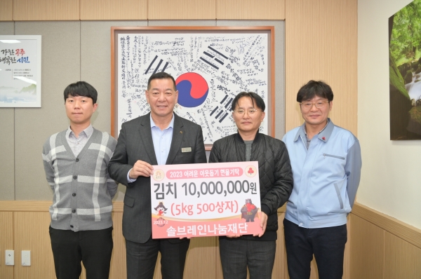 솔브레인 나눔재단은 지난 11일 시청 상황실에서 기탁식을 갖고 공주시 취약계층을 위해 김치 500상자를 전달했다.