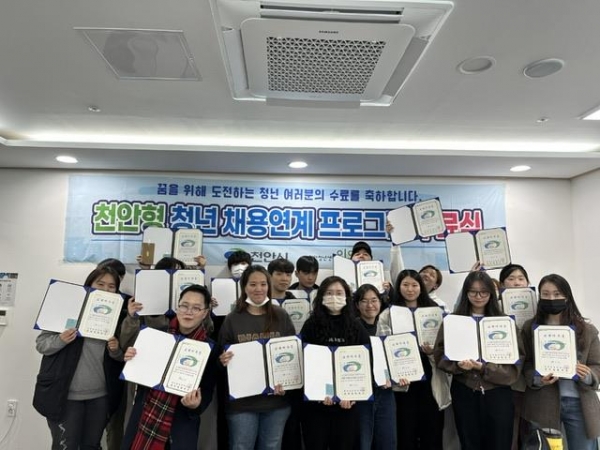 천안형 청년 채용연계 사업은 지난해 시범사업을 거쳐 올해 정식으로 추진됐으며 7회차 걸쳐 139명이 교육을 받았으며 70명이 취업하는 성과를 거뒀다.