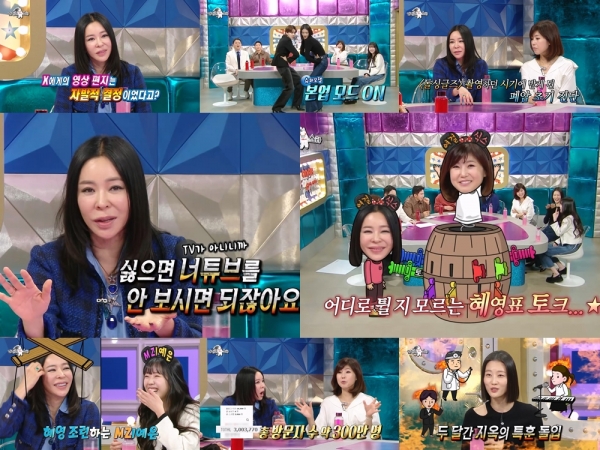 이날 방송은 센 언니 선두 주자 이혜영의 거침없는 입담과 그런 이혜영에게 당하면서도 서포트하는 강수정의 ‘티키타카’, 첫 ‘라스’ 쓴맛에 독을 품은 ‘예능 깔깔이’ 이현이의 활약, 센 언니 이혜영도 휘두르는 지예은의 당돌한 MZ 토크로 쉴 새 없는 웃음을 선사했다.