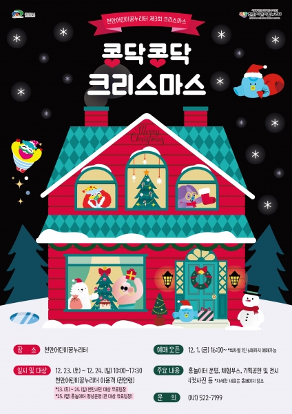 [세종타임즈] 천안어린이꿈누리터는 제3회 크리스마스 기획행사 ‘콩닥콩닥 크리스마스’를 오는 23일부터 24일까지 이틀간 진행한다.