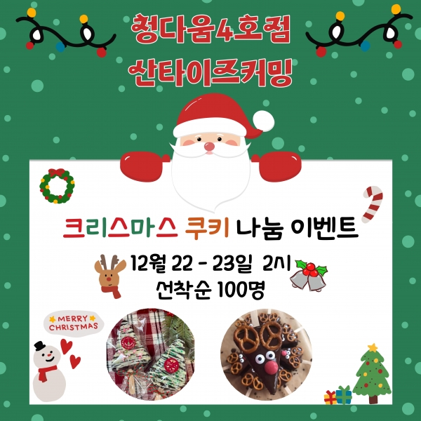 [세종타임즈] 성정청소년문화의집은 청다움4호점이 크리스마스를 맞아 지난 22일부터 23일까지 이틀간 간식 행사 ‘산타이즈커밍’을 개최했다.