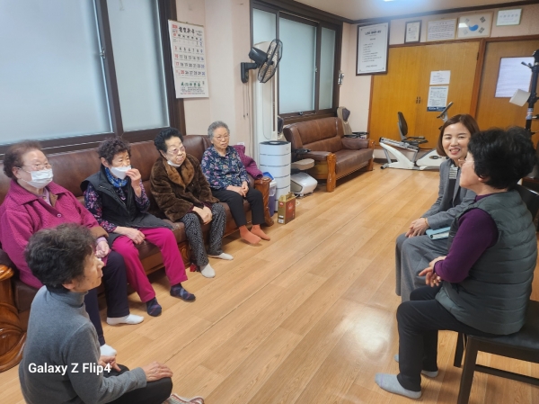 이 동장은 “마을사랑방 역할을 하는 경로당을 방문해 청취한 어르신들의 귀중한 의견을 행정에 적극 반영하겠다”며 “어르신들이 행복한 노후를 보낼 수 있도록 최선을 다하겠다”고 밝혔다