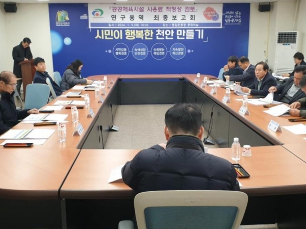 [세종타임즈] 천안시가 9일 ‘공공체육시설 사용료 적정성 검토 용역 최종보고회’를 개최했다.