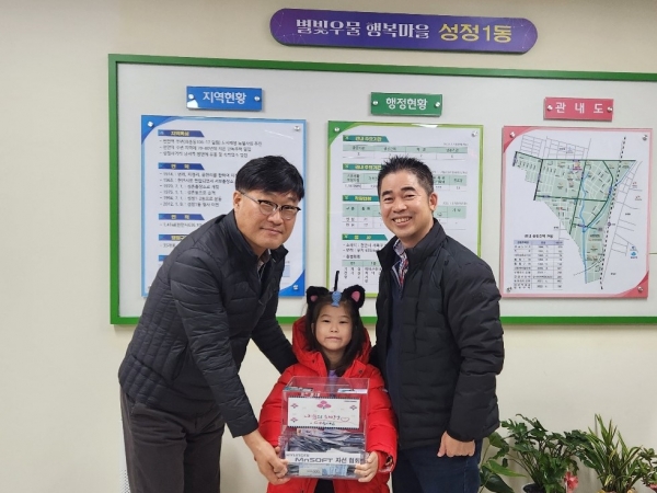 김종범 성정1동장은 “어려운 시기에 매년 이웃을 위한 따뜻한 나눔을 실천해주신 이돈환 대표님께 감사드리며 기부금은 어려운 이웃들을 위해 소중히 사용하겠다”고 전했다.