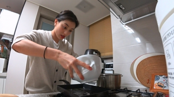 장을 보고 귀가한 지효는 정리부터 빠르게 마치며 ‘살림 머신’ 모드를 켠다.
