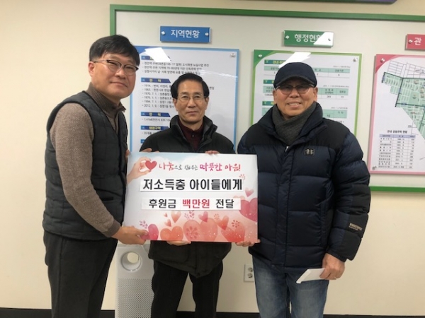 [세종타임즈] 천안시 성정1동은 지난 25일 친목단체모임인 신우회가 저소득층 아동을 위한 기부금 100만원을 전달했다고 밝혔다.