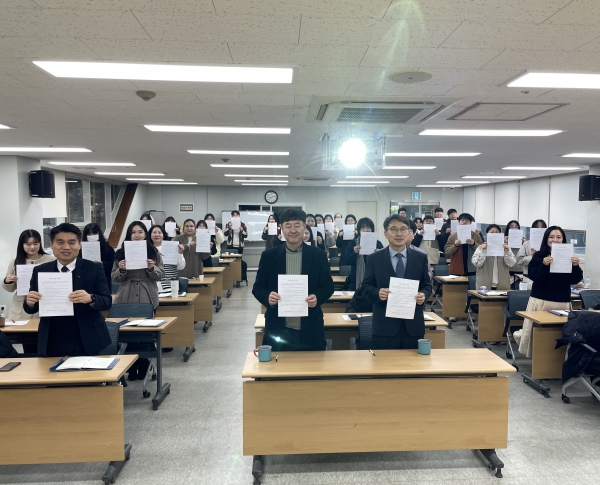 이날 재단 임·직원은 청렴하고 검소한 생활을 통해 부정부패 척결 및 공정한 사회를 조성하는데 앞장 설 것을 낭독하며 ‘반부패 청렴실천’을 다짐 서약했다.