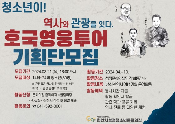 성정청소년문화의집은 청소년이 직접 기획하고 설명하는 ‘호국영웅투어-청소년 역사여행 기획자’를 운영하며 역사·여행 관련 직업 체험과 함께 역사여행 기획, 해설사로 활동하게 된다.