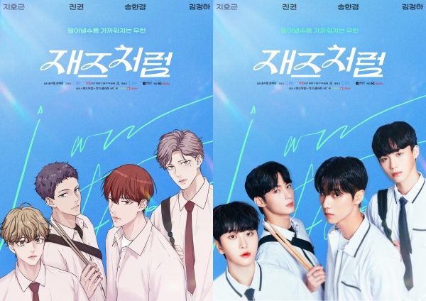 웹툰 버전 포스터 속 캐릭터들과 똑같은 포즈를 취하고 있는 이들은 디테일 하나 놓치지 않은 놀라운 싱크로율을 자랑, ‘재즈처럼’의 성공적인 실사화를 기대케 했다.
