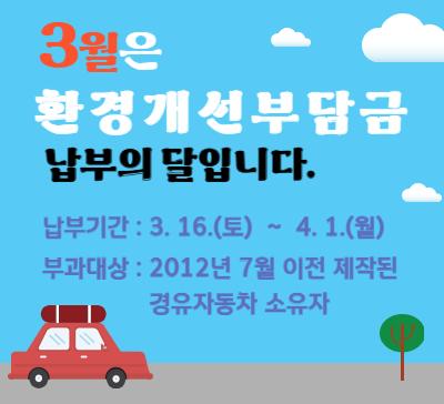 이번 1기분 부과금은 지난해 하반기 경유자동차 사용분에 대해 자동차 배기량 기준 오염유발계수, 지역계수 및 차령계수 등을 감안해 부과기준일 자동차등록원부상 소유자에게 부과된다.