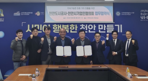 [세종타임즈] 천안도시공사는 지난 26일 공사 본부에서천안시기업인협의회와 ‘중대재해처벌법 관련 기술지원을 위한’ 공동협력업무협약을 체결했다.