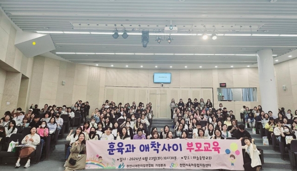 [세종타임즈] 천안시육아종합지원센터는 지난 23일 천안시어린이집연합회 가정분과 어린이집 부모 170명을 대상으로 ‘훈육과 애착사이’ 부모교육을 진행했다.