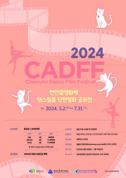 [세종타임즈] 천안문화재단 천안시영상미디어센터는 국내‘춤’장르 단편영화 발굴과 제작 활성화를 위해 ‘2024 천안춤영화제 댄스필름 단편영화 공모전’을 공모한다고 7일 밝혔다.