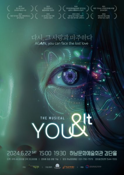뮤지컬 ‘유앤잇’은 AI가 보편화된 미래를 배경으로 죽은 아내를 로봇으로 되살리며 인간의 존엄성과 로봇이 인간을 대체할 수 있는지 철학적 물음을 던지는 작품이다.