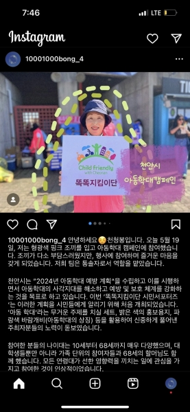 윤은미 아동보육과장은 “5월 가정의 달을 맞아 ‘아동학대 예방’을 넘어 ‘가족 간 메시지’를 주제로 한 인증을 통해 가족 간 화합을 도모하고 놀이 형식의 캠페인 활동으로 시민들의 관심 독려와 아동학대 예방 강화에 힘쓸 예정이다”고 말했다.