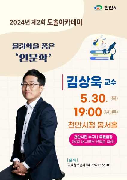 [세종타임즈] 천안시는 30일 오후 7시 천안시청 봉서홀에서 물리학자 김상욱 교수를 초청해 도솔아카데미 강연을 진행한다.