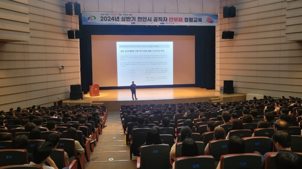 [세종타임즈] 천안시는 지난 28일부터 29일까지 이틀간 전 직원을 대상으로 ‘2024 천안시 공직자 반부패 청렴교육’을 실시했다.