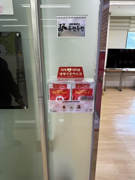 배부한 방연마스크는 화재 시 긴급하게 대피할 수 있도록 유독가스 흡입을 막아주는 습식 마스크로 신속한 대피 및 초기 골든타임 확보에 도움이 된다.