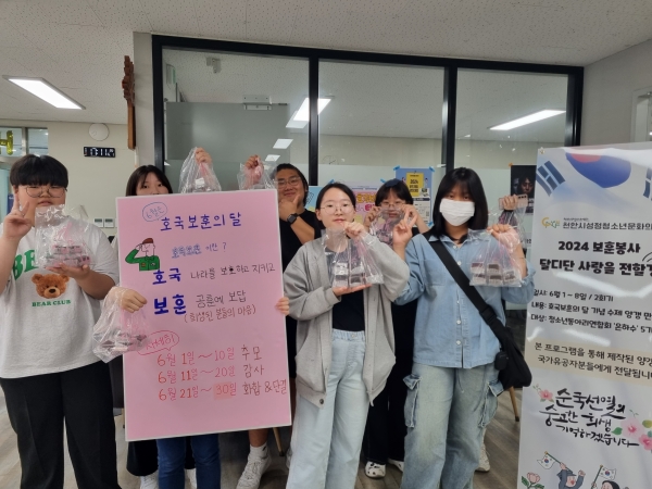 한편 천안시성정청소년문화의집은 6월 호국보훈의 달을 맞아 별빛식탁-태극기 케이크 만들기, 청소년 역사 여행 기획자-호국영웅투어 등을 추진할 계획이다.