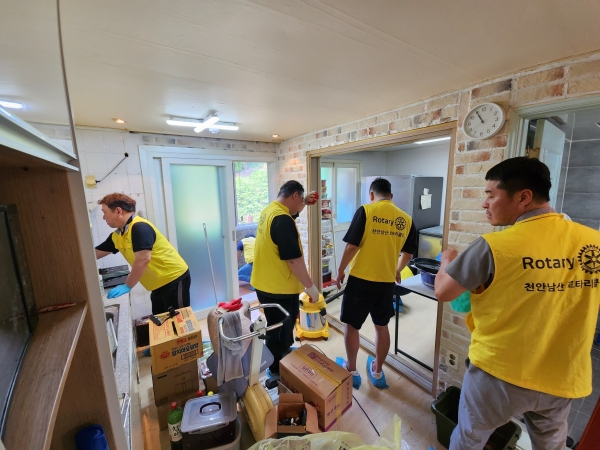 이날 천안남산로타리클럽 회원과 주거복지종합지원센터 직원들은 질병으로 오랜 기간 쓰레기를 방치해 열악한 위상 상태에 놓인 1인 가구를 방문해 집 청소와 정리를 진행했다.