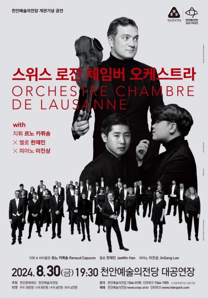 [세종타임즈] 천안문화재단은 천안예술의전당 개관 12주년을 기념해 ‘스위스 로잔 체임버 오케스트라 with 르노 카퓌송, 한재민, 이진상’ 공연을 천안예술의전당 대공연장에서 8월 30일 개최한다고 밝혔다.