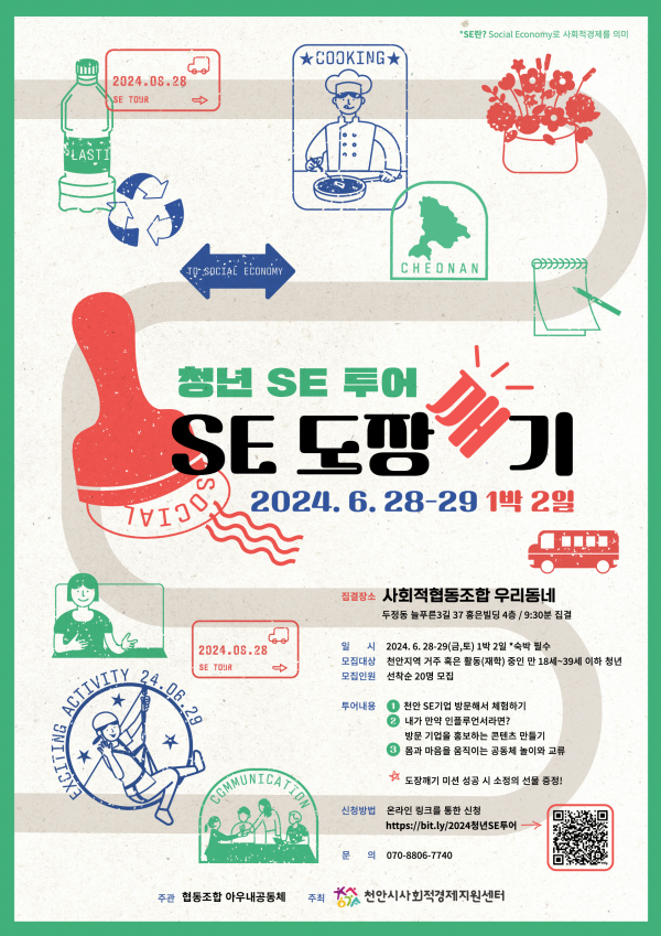 [세종타임즈] 천안시사회적경제지원센터는 오는 28일부터 29일까지 1박 2일간 청년SE투어를 운영한다.
