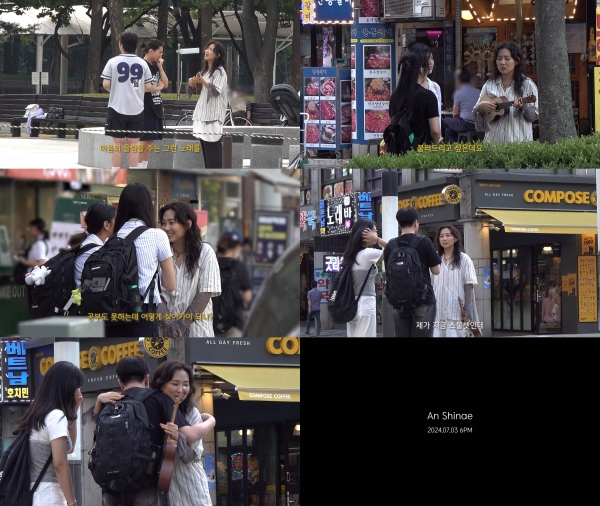영상 속 안신애는 촬영 사실을 숨긴 채 시민들에게 다가가 발매를 앞둔 신곡 라이브를 진행, 이들의 리얼한 반응을 보며 고민과 공감을 나누고 있다.