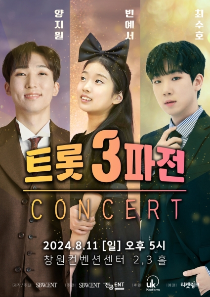4일 공연 제작사 에스비위너엔터테인먼트에 따르면 오는 8월 11일 창원컨벤션센터 2,3홀에서 ‘트롯 3파전’ 콘서트가 개최된다.