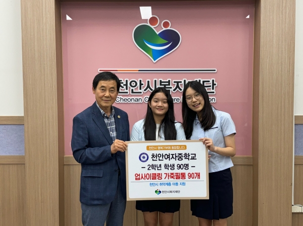 [세종타임즈] 천안여자중학교는 23일 천안시복지재단에 새 활용 가죽필통 90개를 기부했다.