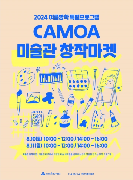 [세종타임즈] 천안시립미술관은 2024년 여름방학 특별 프로그램 ‘CAMOA 미술관 창작마켓’을 다음 달 10일과 11일 양일에 걸쳐 진행한다고 26일 밝혔다.