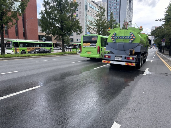 시는 도심 온도를 낮추고 안전사고 등에 대비하기 위해 터미널, 천안역, 중앙시장 등 다중이용시설 인근 도로를 중심으로 살수 작업을 실시하고 있다.