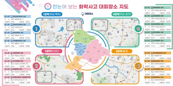 시는 유해화학물질 유출 사고 시 신속한 대피와 사고에 대응하기 위해 화학사고 대피장소 17개소를 지정해 운영 중이다.