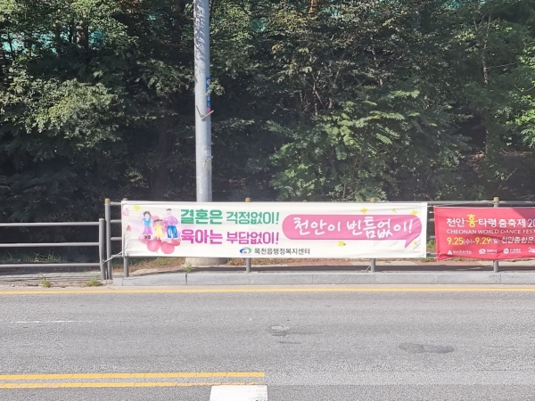 이번 홍보는 초저출생 위기를 지역사회가 함께 극복하고자 하는 취지로 통행량이 많은 주요 지점에 홍보 현수막을 설치했다.