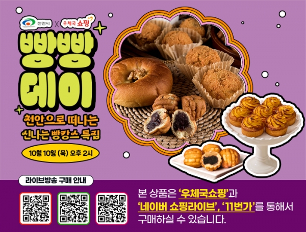시는 ‘2024 빵빵데이 천안’ 개최를 앞두고 10일 오후 2시부터 우체국쇼핑몰과 네이버 쇼핑라이브, 11번가에서 라이브커머스 방송을 진행한다.
