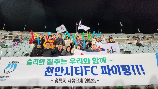 이번 단체관람은 청룡동 체육회와 주민자치회의 주도로 추진됐으며 이들은 현수막과 응원도구를 이용해 열띤 응원을 펼치며 천안씨티FC의 홈경기에서의 승리를 기원했다.