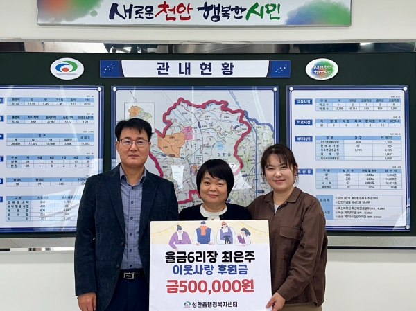 기부된 후원금은 천안시복지재단을 통해 지정 기탁 받아 성환읍 취약계층을 위한 사업에 쓰일 예정이다.