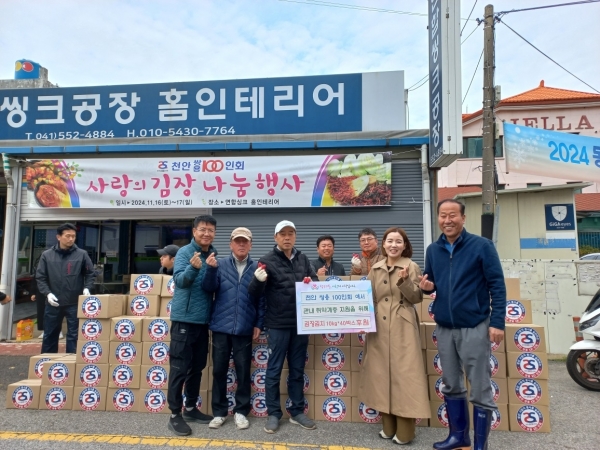 [세종타임즈] 천안쌍용100인회(회장 손영주)는 지난 17일 다가오는 겨울을 맞이해 취약계층 지원을 위해 김장김치 10kg 40박스를 쌍용1동(동장 이정우)에 전달했다고 밝혔다.