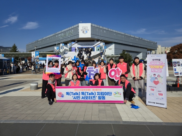 [세종타임즈] 천안시는 지난 23일 ‘똑똑지킴이단’ 시민서포터즈가 천안유관순체육관에서 열린 현대캐피탈 스카이워커스 홈경기의 관람객 3,500여명을 대상으로 하반기 아동학대 예방·홍보 캠페인을 실시했다고 밝혔다.