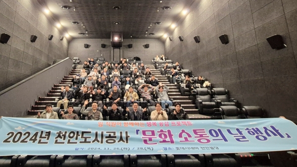 [세종타임즈] 천안도시공사는 지난 26일과 28일 2일간 직원 80여명이 함께 영화를 관람하며 소통하는 ‘문화 소통의 날’ 행사를 진행했다고 밝혔다.
