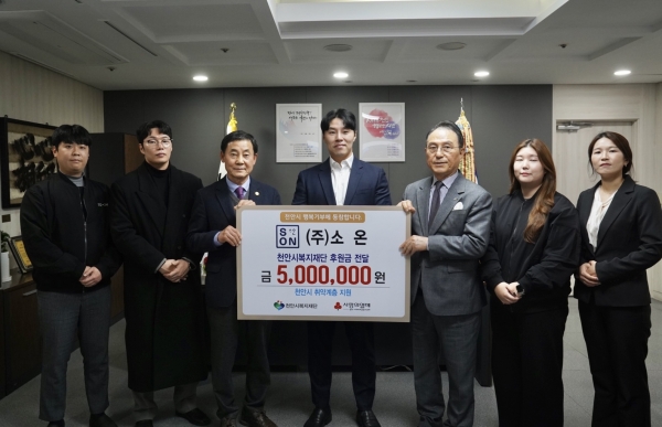 홍승호 ㈜소온 대표는 “이번 후원은 지난 가정 후원과 달리 직원들과 나눔 문화 확산 실천을 결심했다”며 “앞으로 기업의 성장만큼 나눔 실천도 커질 수가 있도록 노력하겠다”고 전했다.